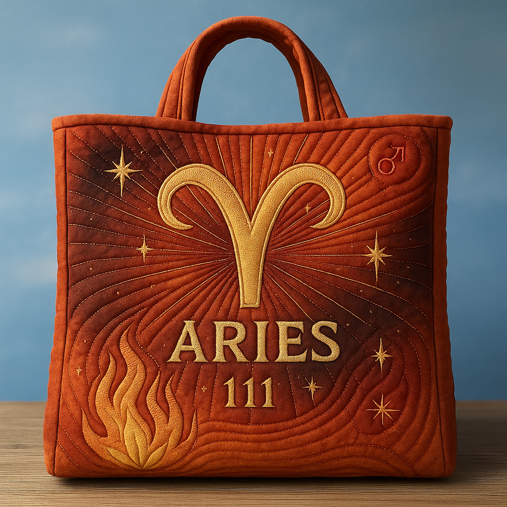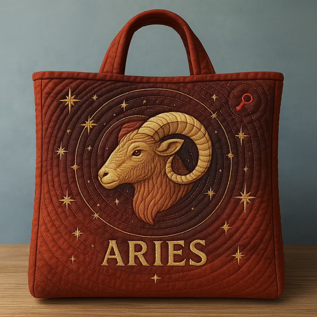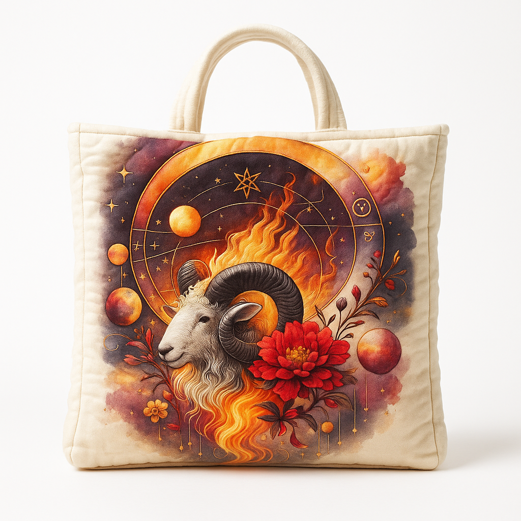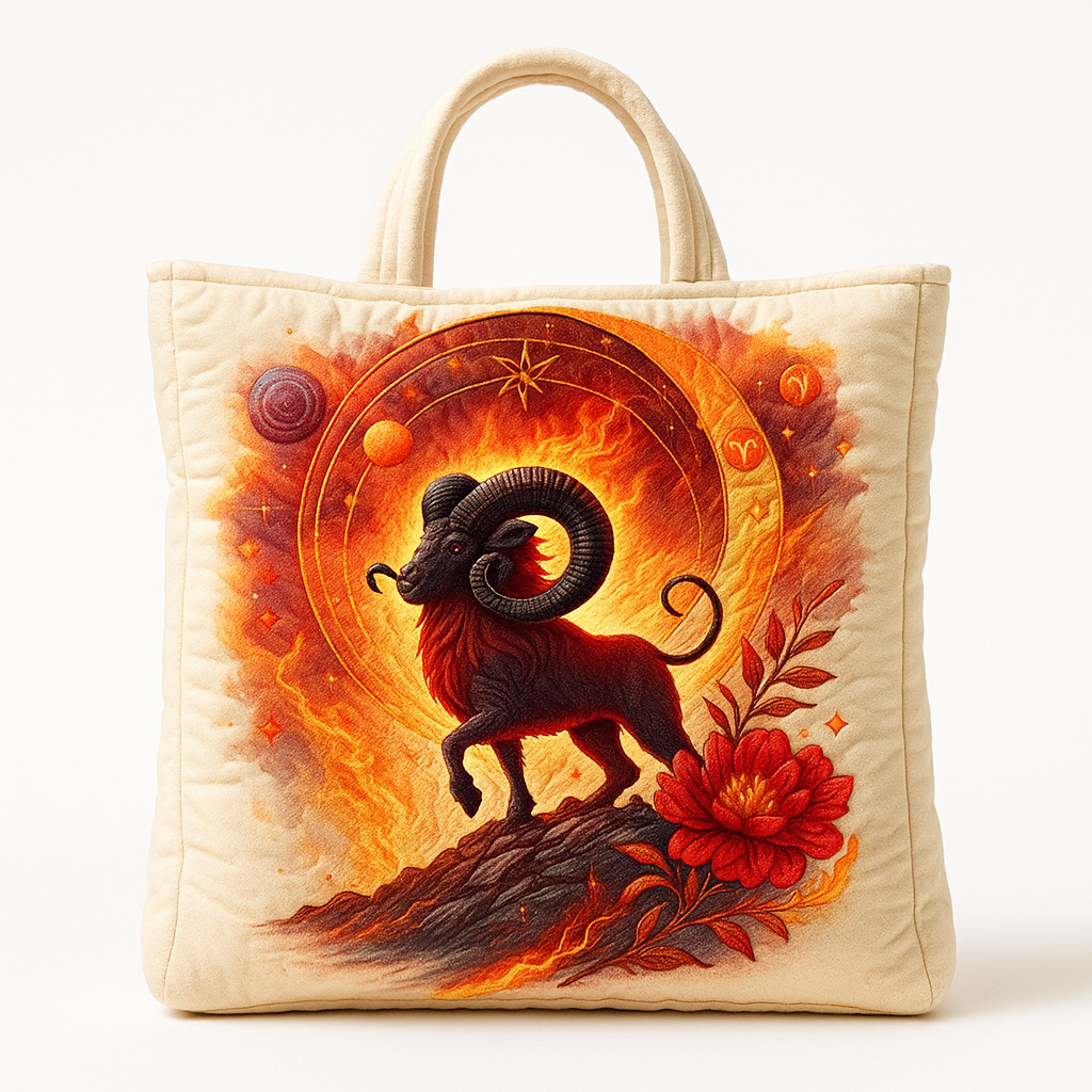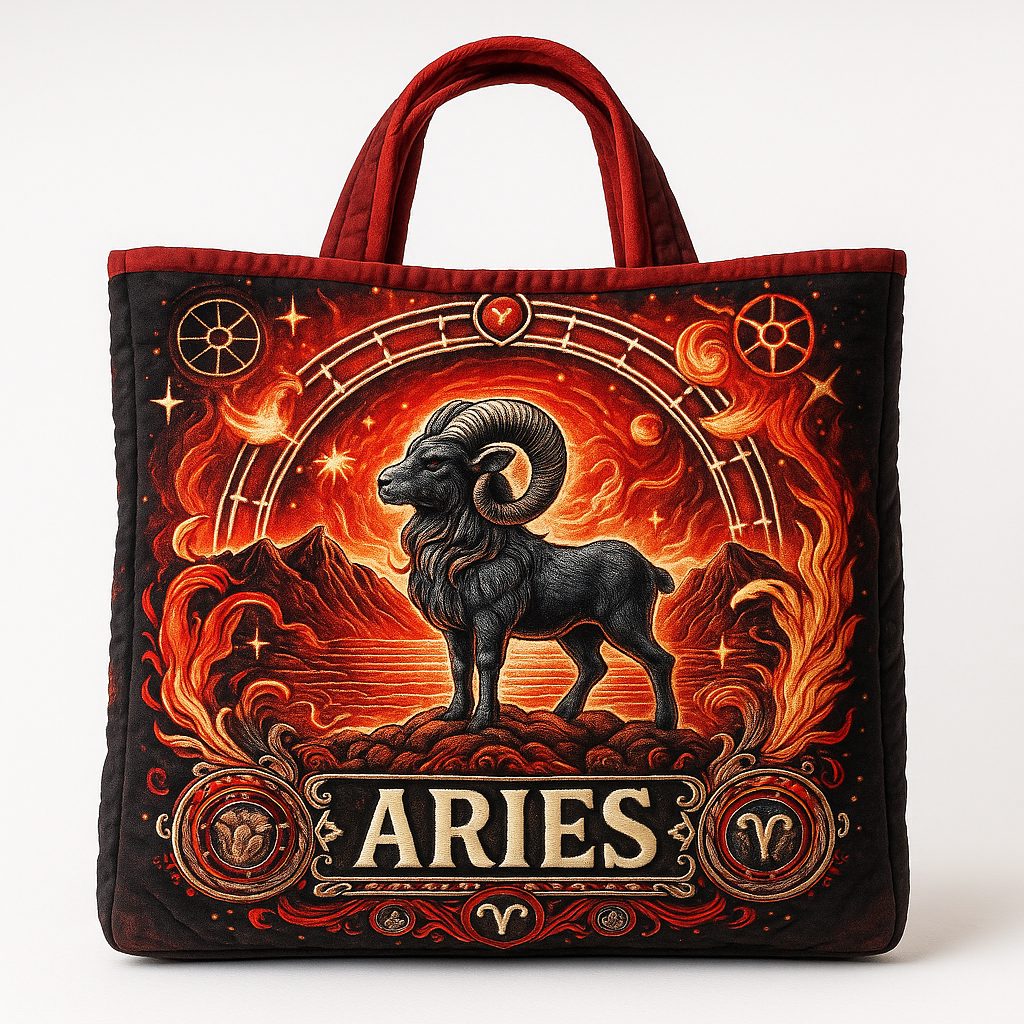 Aries Zodiac Quilted Tote Bag – The Fire of Courage