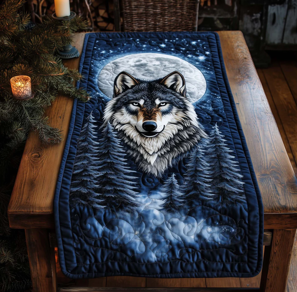 Artistic Quilted Table Runner with Peacock Gnome Wolf Hummingbird Themed 3D Embossed Pattern Soft Breathable Fabric Decor Mat for Dining Room & Kitchen