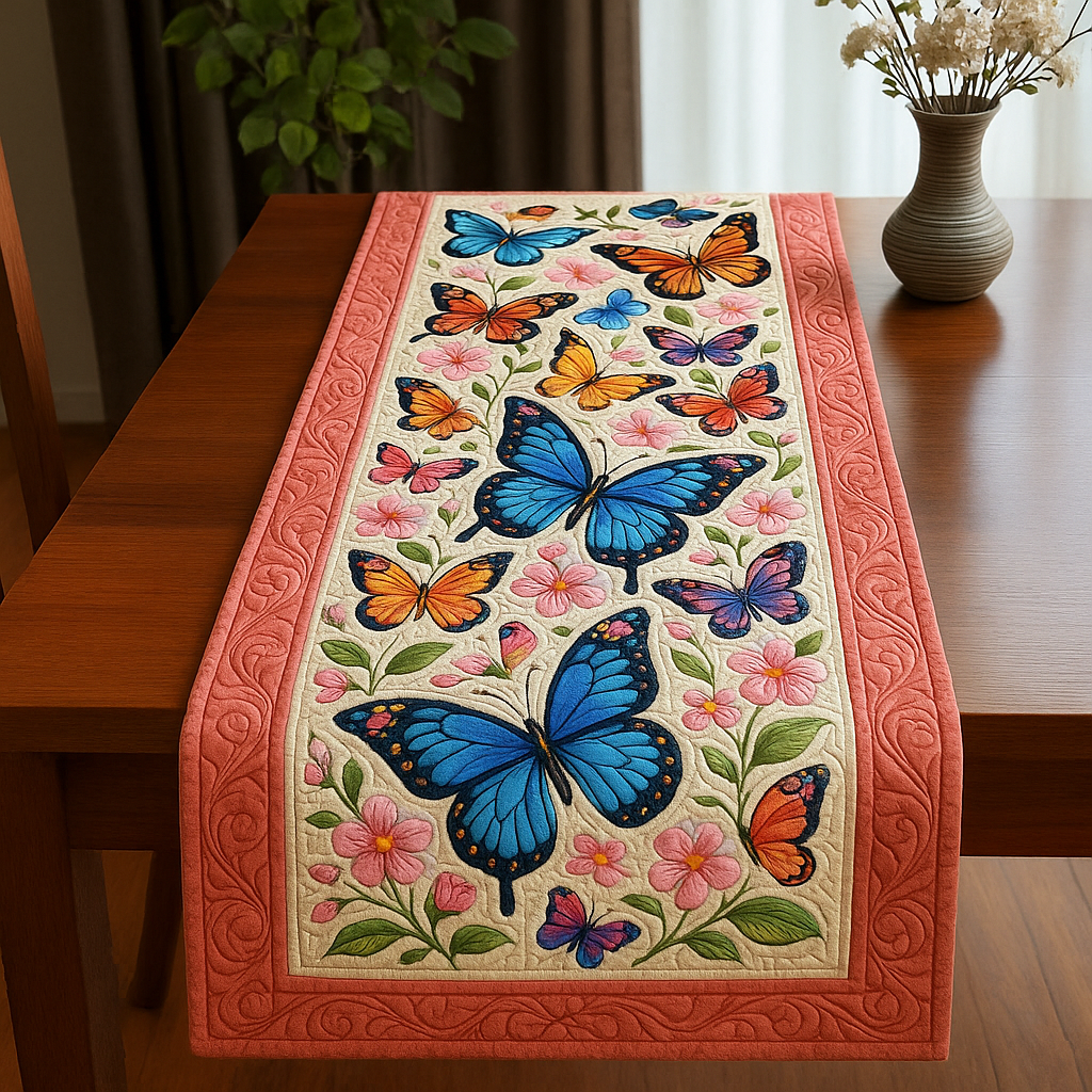Bring festive warmth and timeless elegance to your table with our Butterfly Garden Quilted Table Runner.