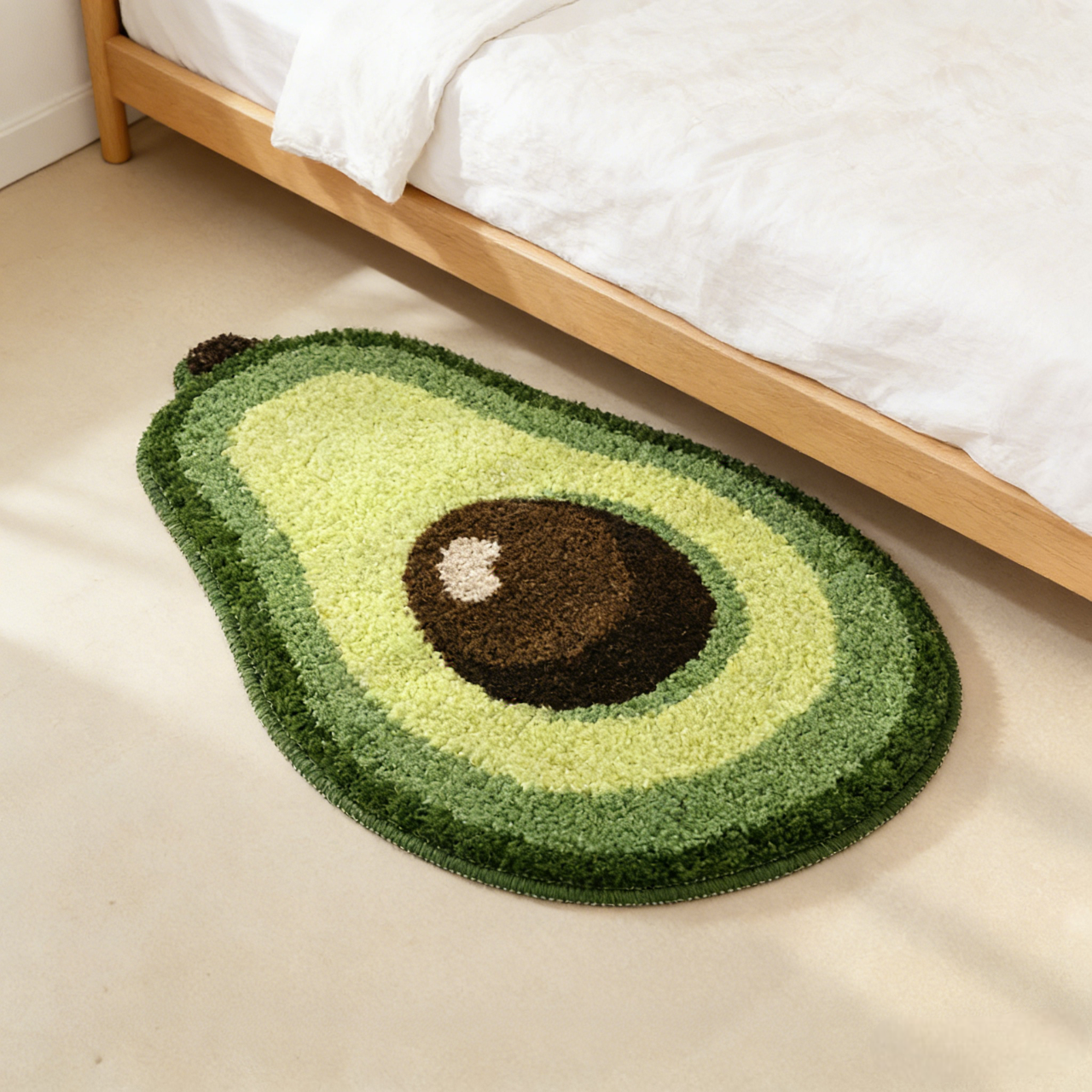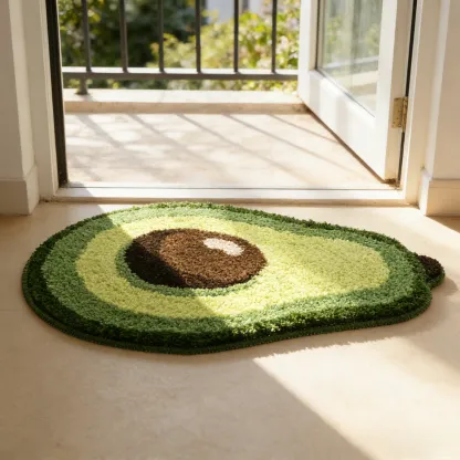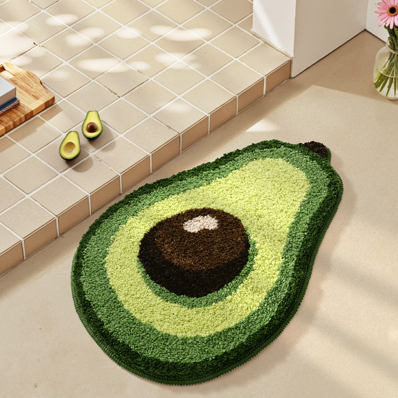 Add a playful yet modern accent to your space with the Avocado Halves Flocked Rug. Inspired by the clean, organic beauty of a freshly sliced avocado, this rug features layered green tones, soft avocado flesh details, and a rich brown pit centerpiece for a fun and eye-catching look. Its fresh botanical design instantly brightens your bathroom while adding a calm, natural feel to your décor.