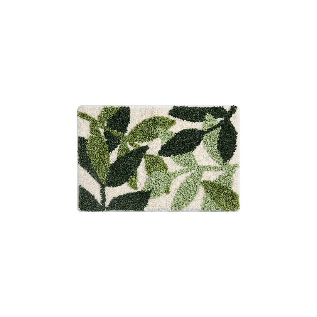 Turn your space into a peaceful nature-inspired retreat with the Forest Canopy Flocked Rug. Designed with layered leaf patterns in emerald, forest green, and sage tones, this bath rug captures the soothing beauty of a sunlit woodland floor. Set against a soft beige background, the organic botanical design adds depth, freshness, and a calm natural touch to your bathroom décor.