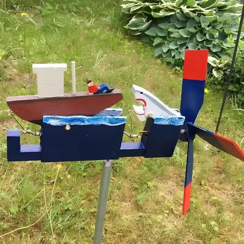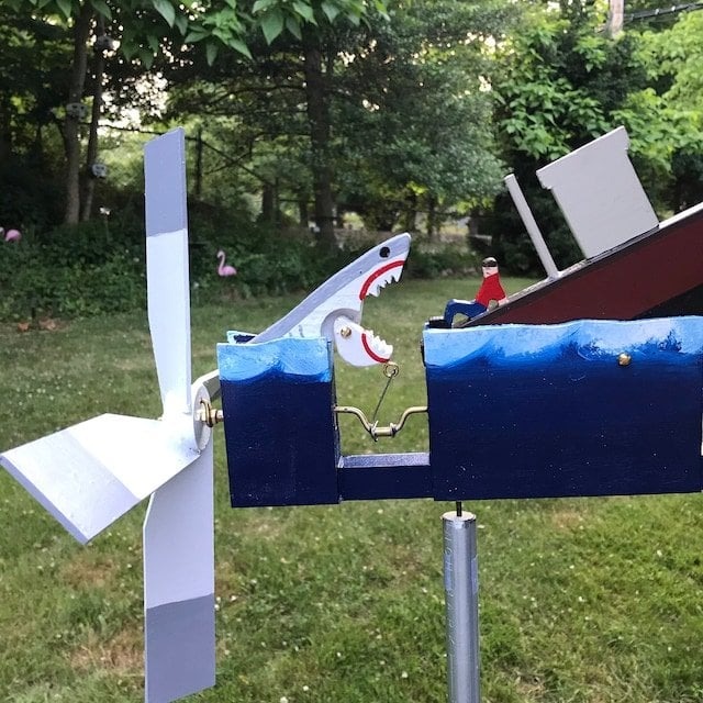 “You’re gonna need a bigger boat”. Who can forget that epic line from the movie “Jaws”. This unique yard ornament is destined to be a hit in any garden landscape. They spin and turn even in the slightest wind.