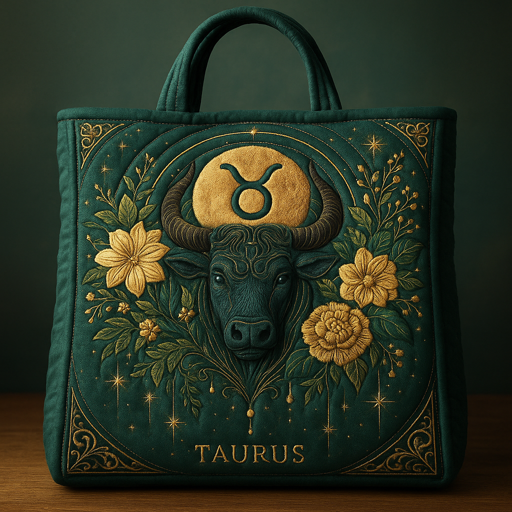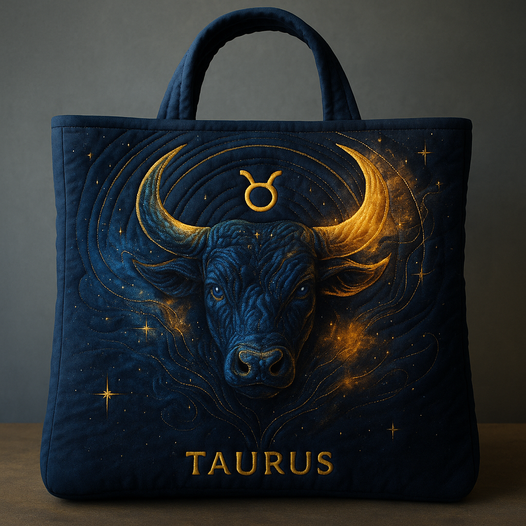Taurus Zodiac Quilted Tote Bag – Grounded in Elegance